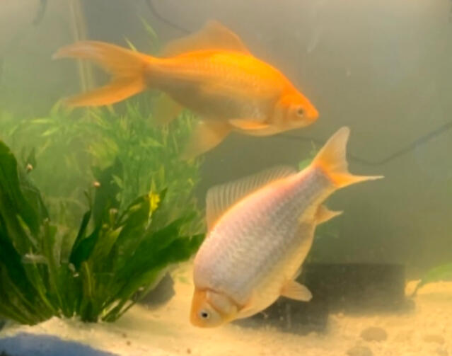 these are my fish, Dennis (the gold one) and Obama (the white one)
